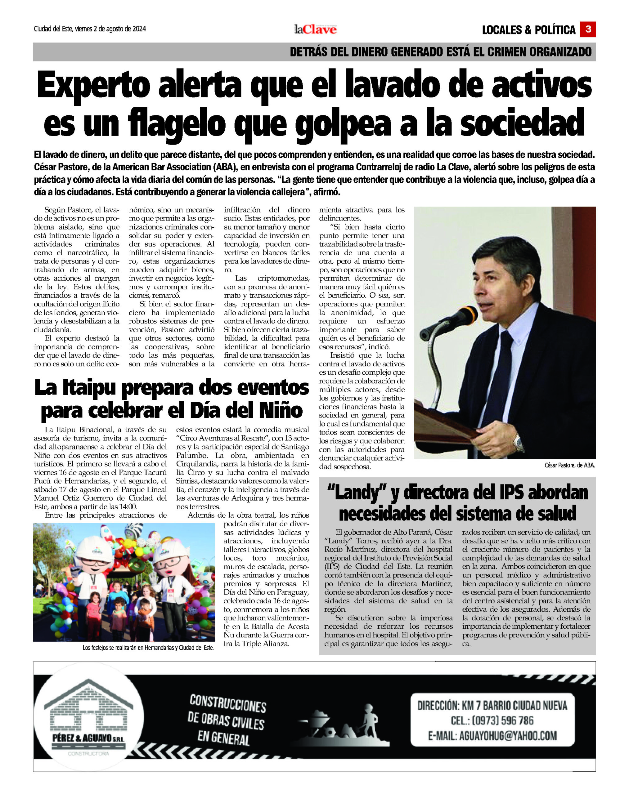 El lavado de dinero, un delito que parece distante, del que pocos comprenden y entienden, es una realidad que corroe las bases de nuestra sociedad. César Pastore, de la American Bar Association (ABA), en entrevista con el programa Contrarreloj de radio La Clave, alertó sobre los peligros de esta práctica y cómo afecta la vida diaria del común de las personas.